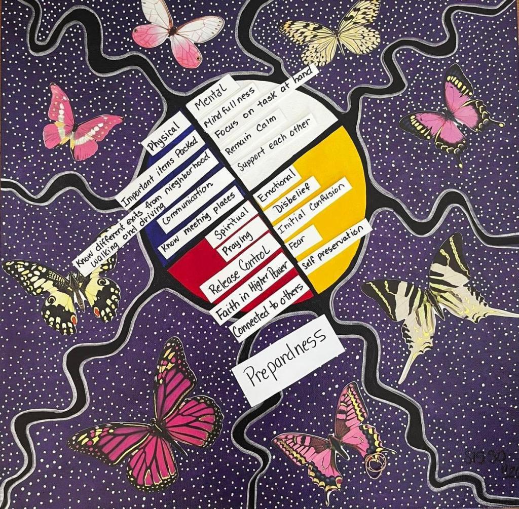 As a survivor of numerous natural disasters (most recently the 2016 Wildfire in Fort McMurray and the flood in 2020), Sonia has lived experience she has built into projects and programming. With deep reverence for and consultation with Elders, she believes that traditional indigenous knowledge, values and culture are, in themselves, important tools to understanding and recovering from disasters. Further, Burke-smith believes that Indigenous knowledge must be valued and widely disseminated and to that end, she developed programming with elders: “The Art of Resiliency” to transform a post traumatic experience into post traumatic growth. “The Art of Resiliency” incorporates traditional healing circles, land based teachings, ceremony, and culminated with public art installations featuring over 500 students. The Art of Resiliency won two awards; a Buffy from Wood Buffalo Arts Council for Best Community Collaboration Project for The Forever Forest and a second from the Fort McMurray Public School District for Community Partner of the year for the 7 Teachings Mural Project.