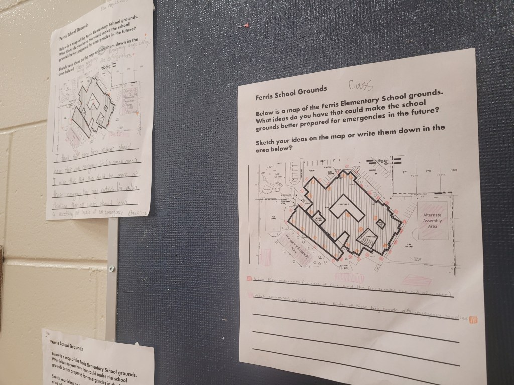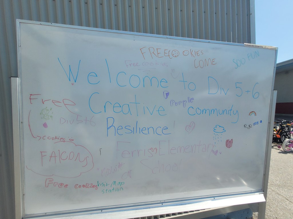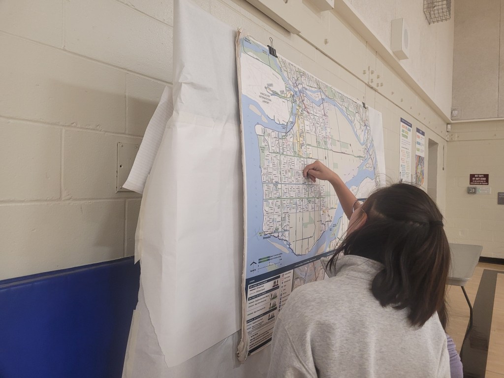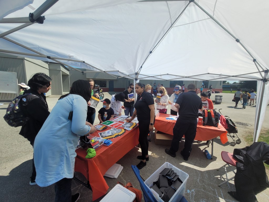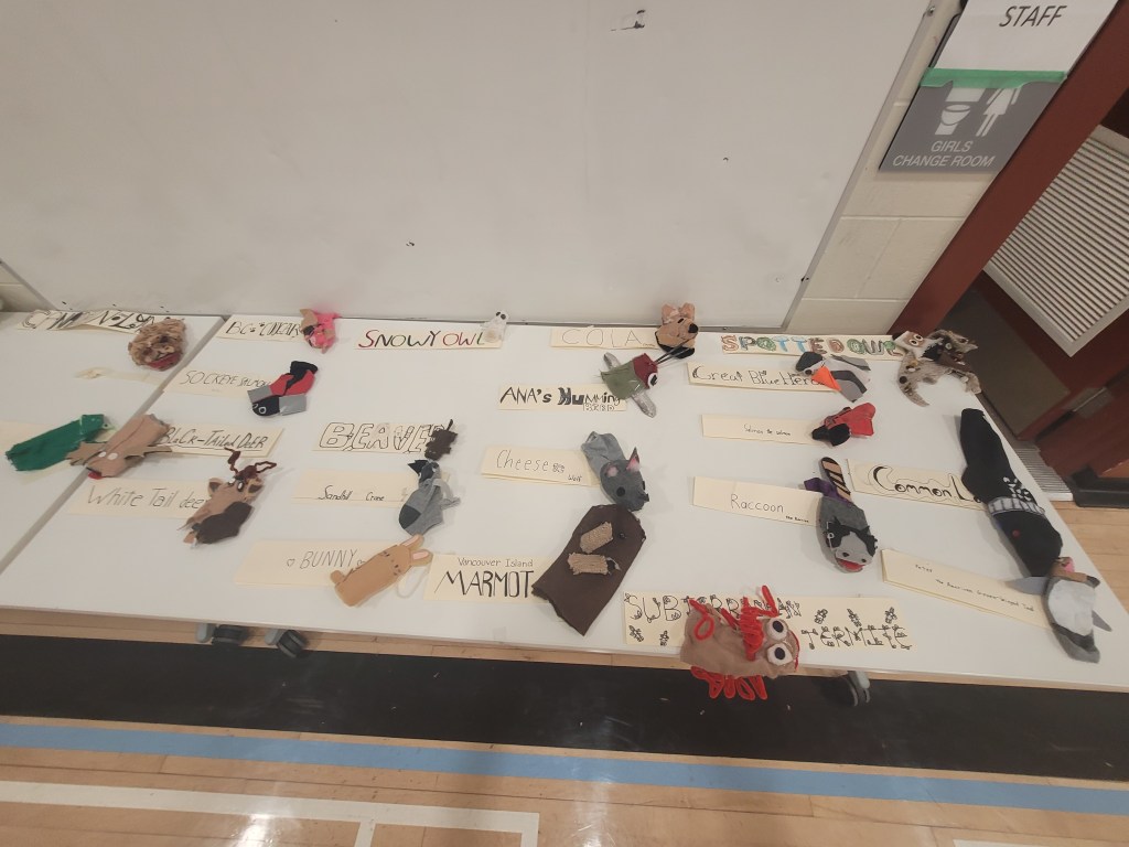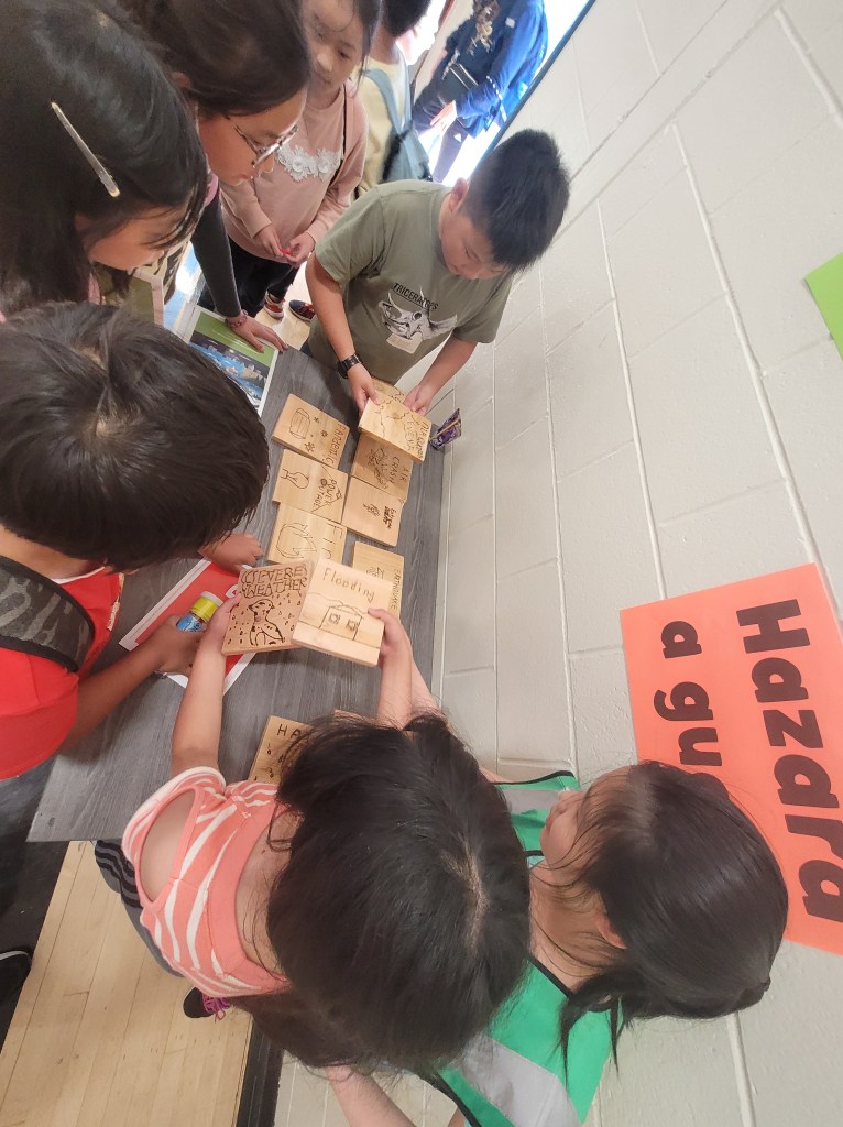 One of the steps to preparedness as defined by the city is to “Get Connected.” During the after school hours on June 1, the school and surrounding community gathered to see the works created by the grade 5 and 6 students. Inside the Gym were multiple displays of the student creations including the local animal based puppets. A hazard guessing game station was set up where participants were challenged to guess the top 11 risks as defined by the City of Richmond. Additionally, neighbourhood maps were posted on the walls where community members were encouraged to connected with each other. Representatives of the City of Richmond Emergency Programs were also on hand to display emergency preparedness kits and provide information for families. The Red Fox Healthy Living Society Active Play crew were also on hand to provide instruction and support on playground games to keep the community active. Earlier in the week the students and teachers baked hundreds of cookies for all to enjoy on the day.
